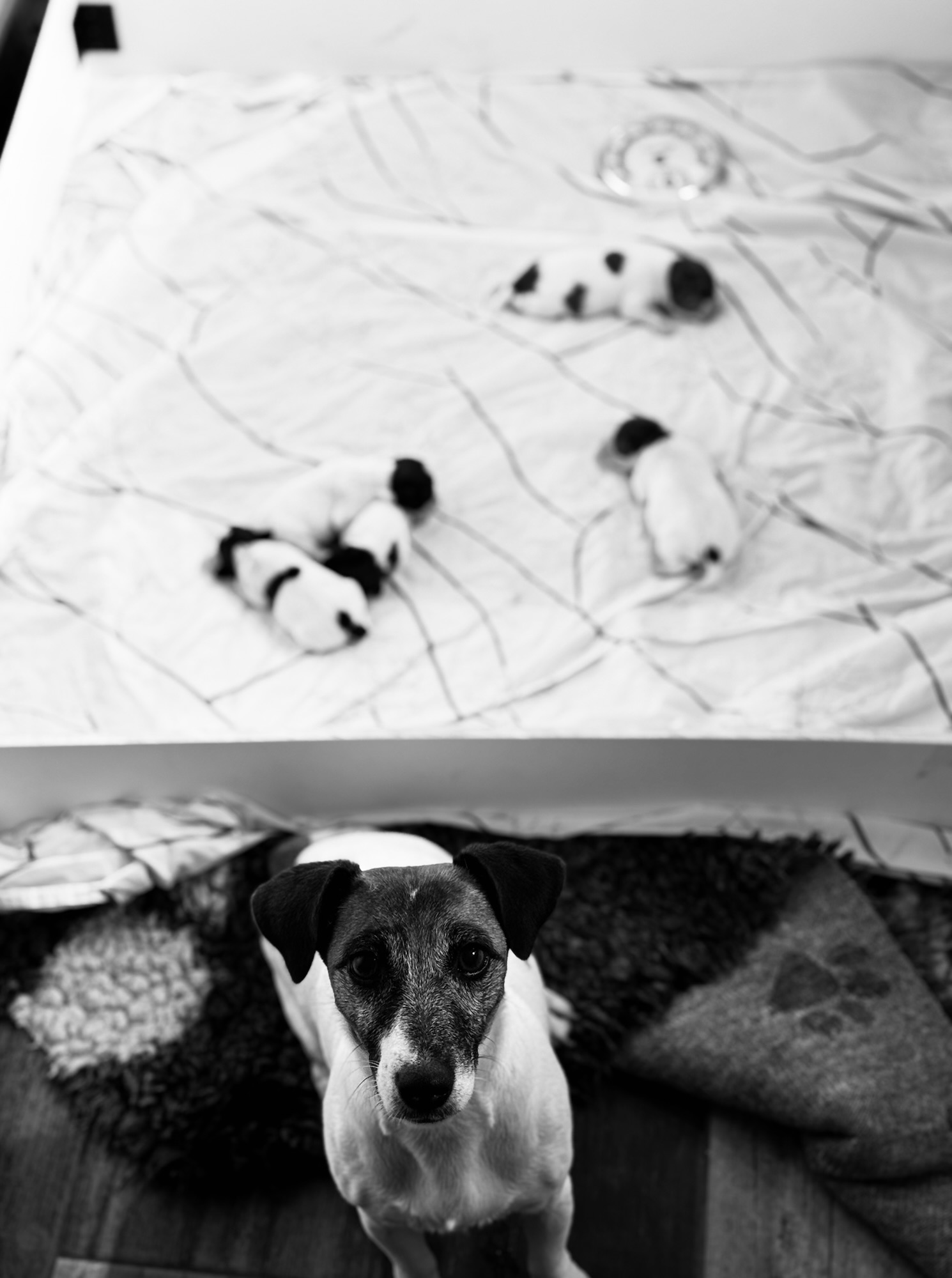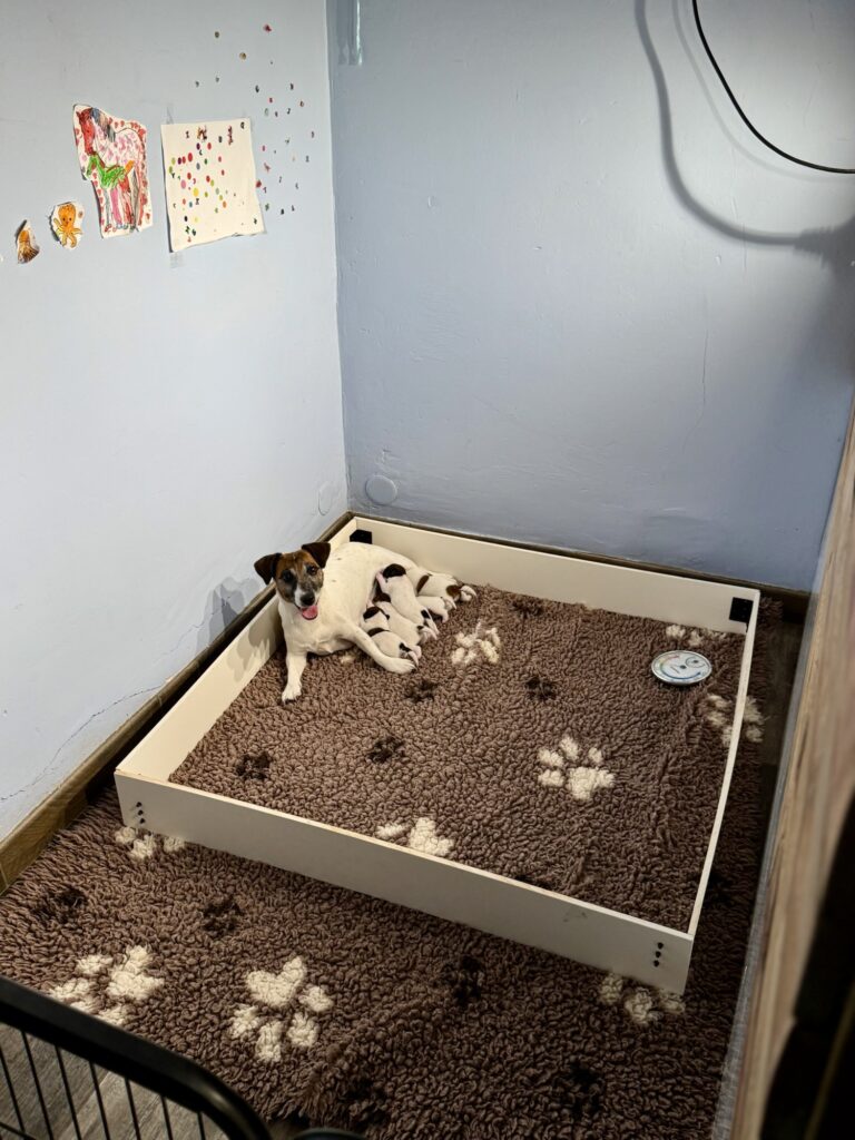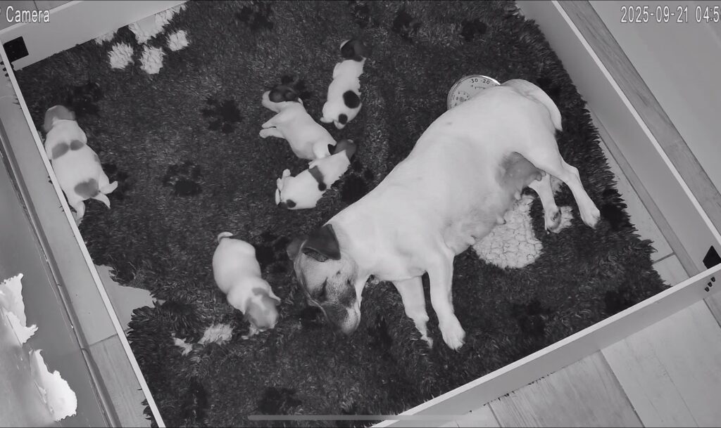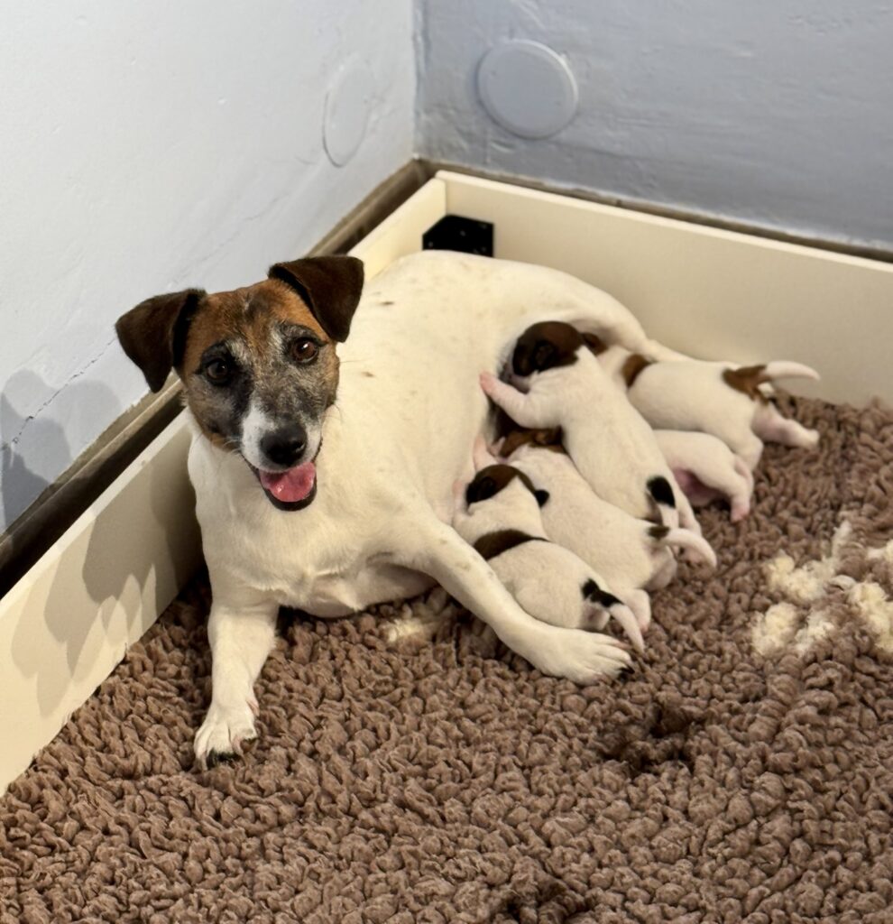 Les 5 chiots Jack Russell de la portée de Prisca & Malo sont nés en pleine nuit le 15 Septembre, entre 3h50 et 7h du matin.